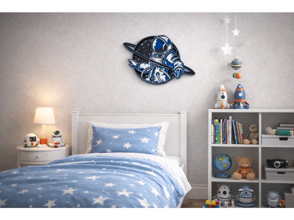 Astronaut zve děti na dobrodružství mezi hvězdami. Přes den zdobí pokoj moderním, vesmírným motivem. V noci jemně svítí a vytváří klidnou atmosféru pro usínání.